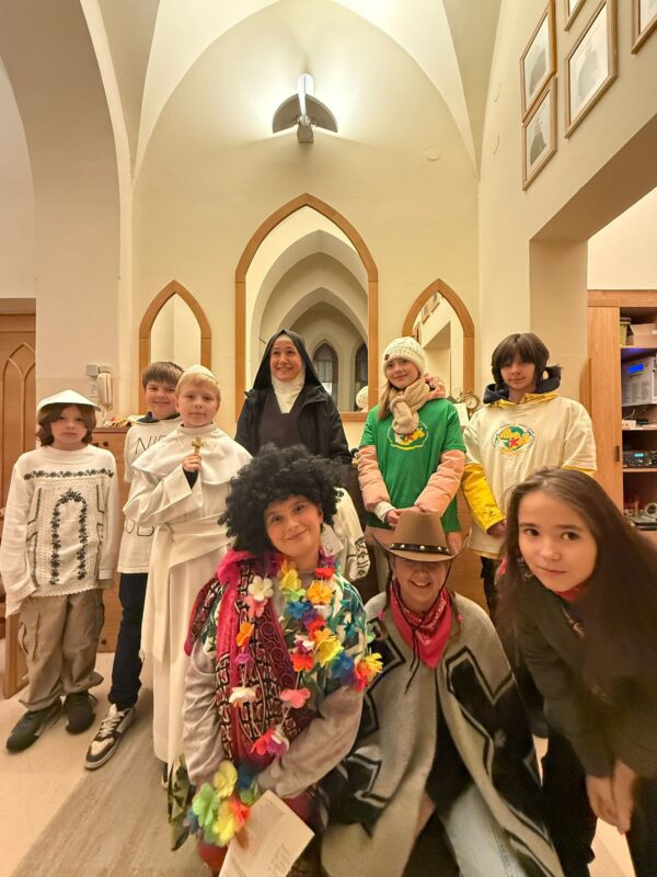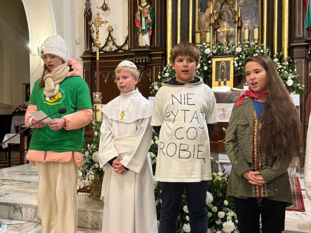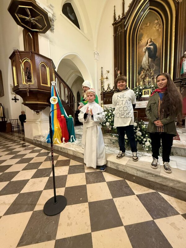 Z tej okazji dzieci z naszej parafii w Skolimowie, należące do Papieskich Dzieł Misyjnych Dzieci Papieskie Dzieła Misyjne 👧👦, wraz ze swoją opiekunką – siostrą Zuzanną 👩🦳 – przez cały dzień ewangelizowały poprzez inscenizacje misyjne prezentowane po Mszach Świętych ⛪